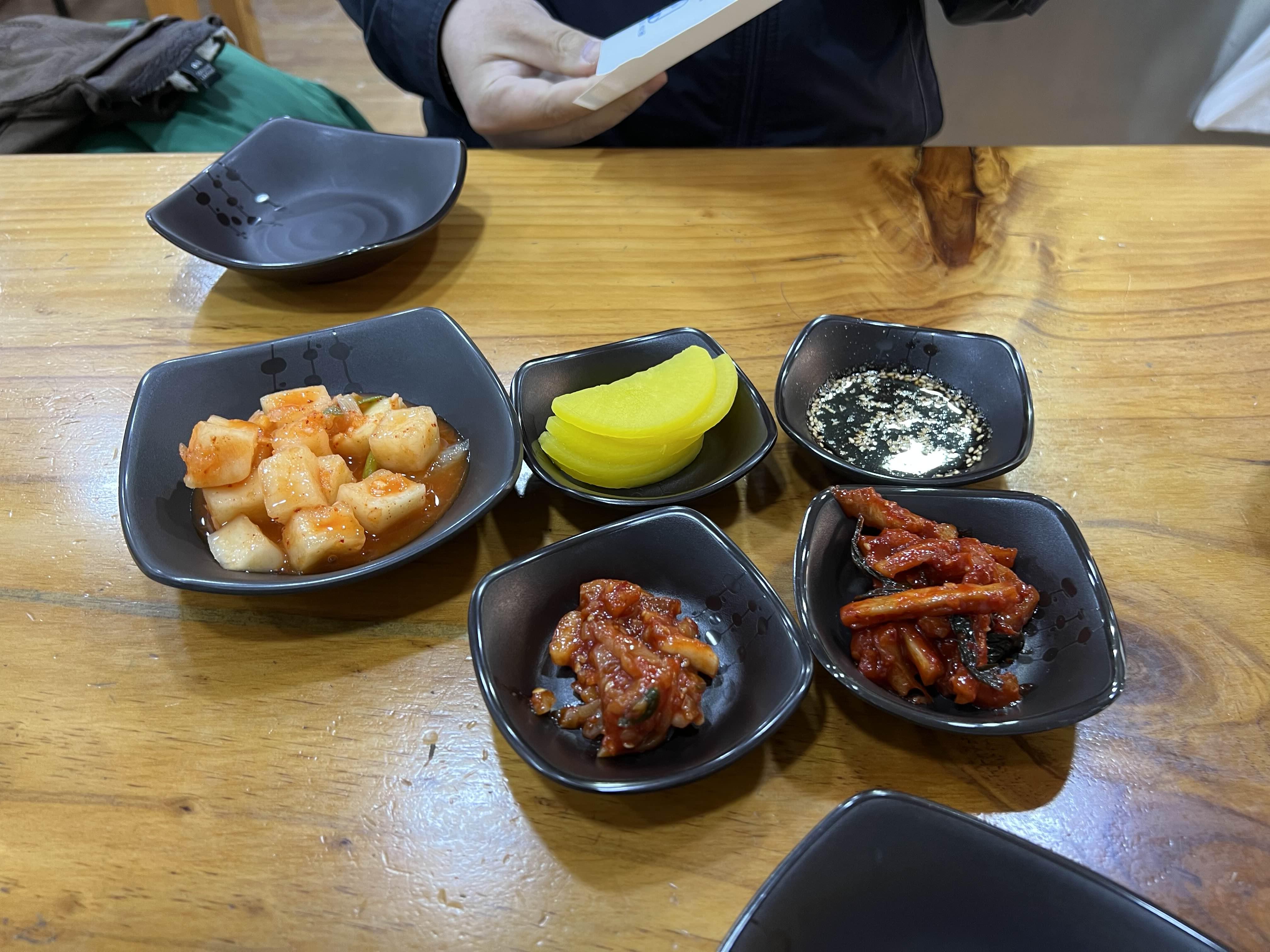 저희는 만두국과 만두를 시켰어요. 반찬도 생각보다 잘 나오는듯 해요. 무말랭이, 젓갈, 단무지, 깍두기, 그리고 간장